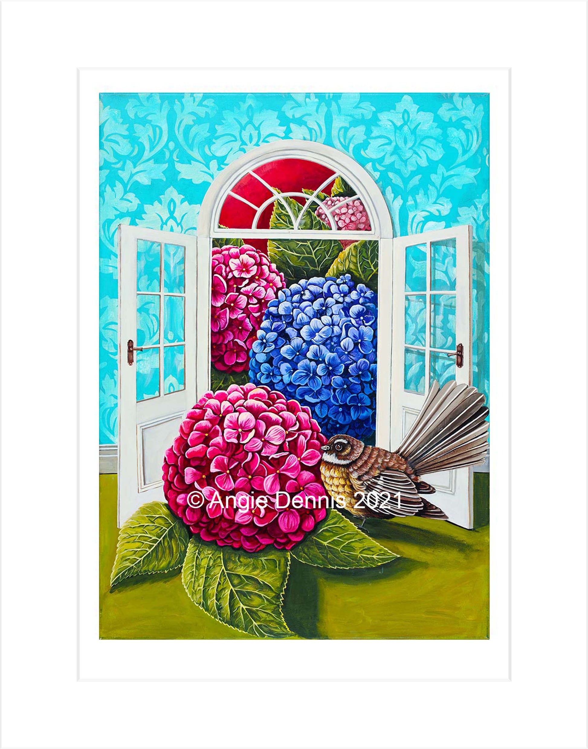 With our lives being saturated with social media, it is so easy to get caught up on our appearance and how we are seen by others. Sometimes it is the smallest or unexpected experiences that can brighten your day - I was reminded of this recently as I walked passed an elderly lady, who when smiled had such a lovely sparkle in her eyes! It reminded me that as I get older, I need to focus on that sparkle as much as the anti-aging cream! Inspired by this fleeting interaction, I created Beauty on the Inside, where the doors symbolise the eyes and the hydrangeas are the beauty of the soul flowing out, the Fantail is my story-teller.
