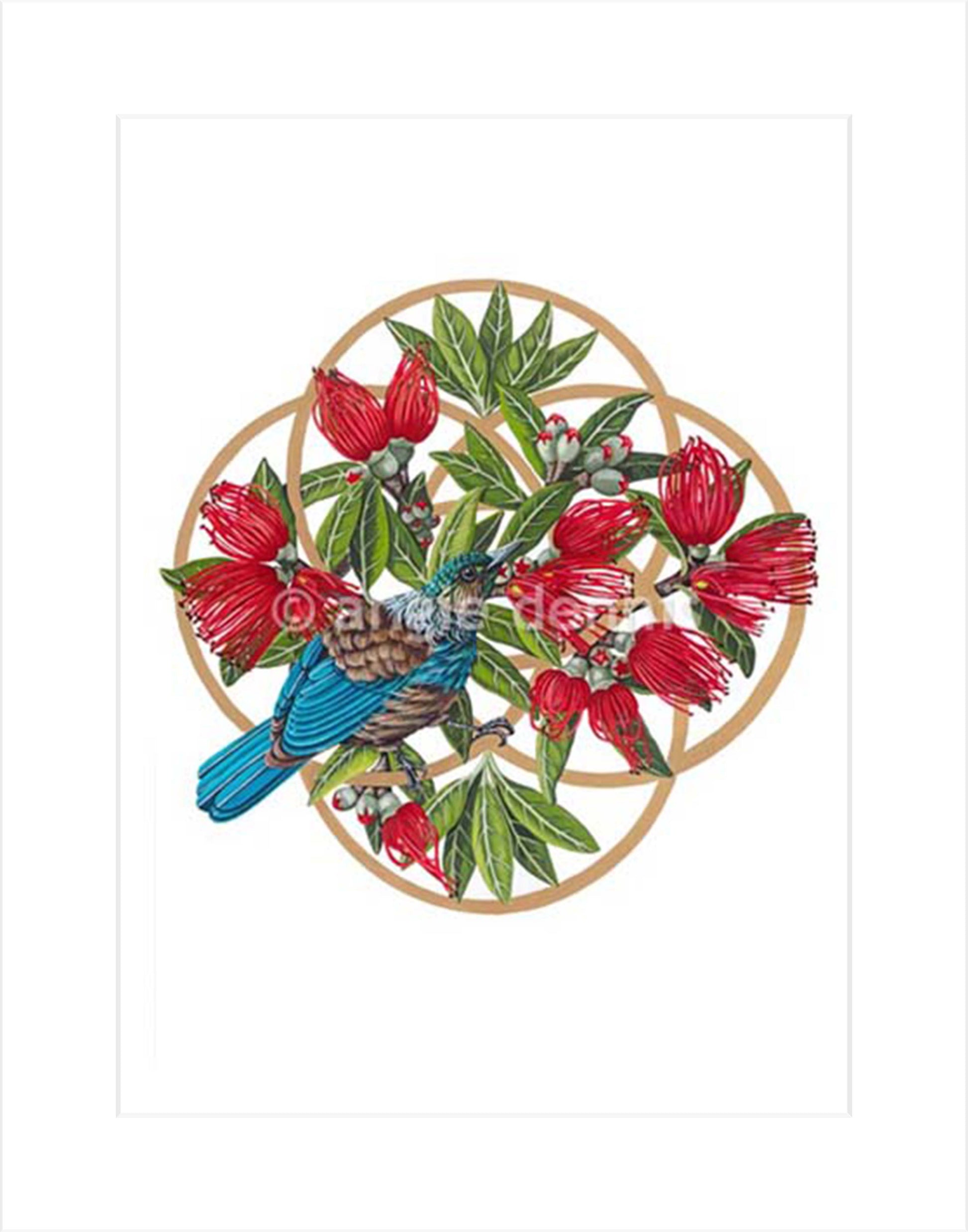 There’s nothing like the sound of birds in particular the Tui in the morning and a reminder to us all of how unique and precious the environment is. The four circles represent the fine balance of nature.