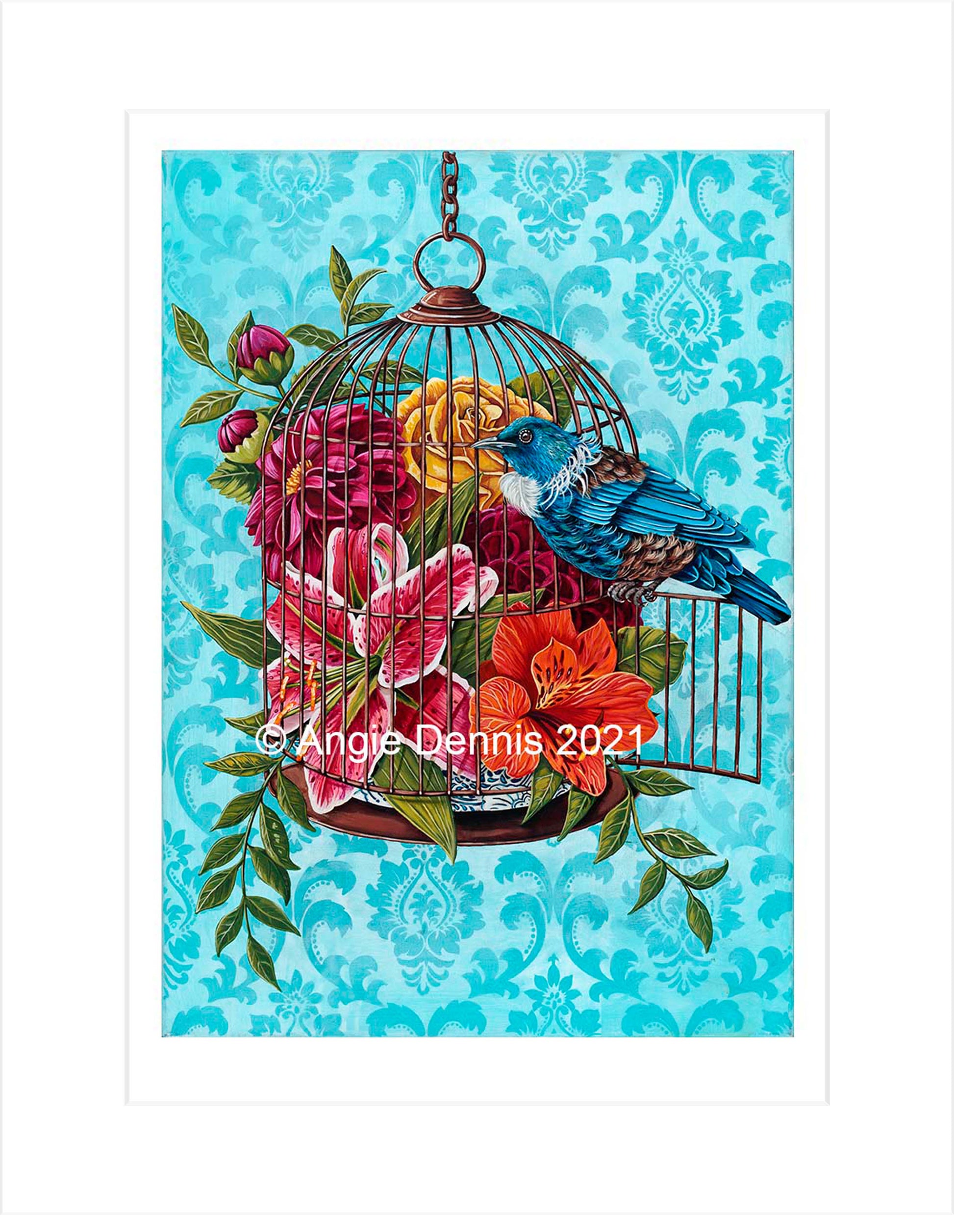 In relationships, it’s important not to lose your identity and compromise yourself and your personality to please others. I believe relationships flourish more healthily if you allow each other to be themself and therefore be independent together. In Flourish the Tui is keeping the cage door open to allow the individual flowers to grow freely yet remain and grow together.